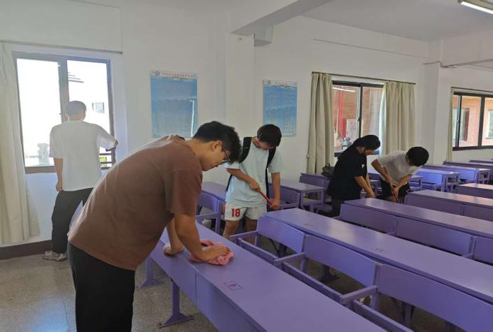 活动中,同学们分工协作、密切配合。员工志愿者对教学楼公共区域进行全方位清洁,重点清理卫生死角、捡拾垃圾杂物、擦拭公共设施;在宿舍区域,同学们也积极行动,整理内务、清扫宿舍,营造干净整洁的生活空间。