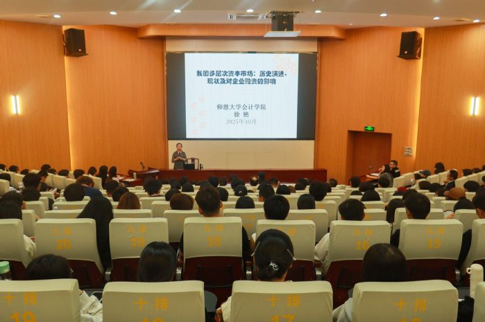 讲座伊始,徐艳教授结合当前财会类专业人才培养实际,指出近年来部分员工在毕业论文撰写、案例分析及学科竞赛中存在对资本市场理解不深、研究视角单一等问题。她强调,资本市场作为现代经济体系的核心枢纽,是连接企业融资、资源配置与宏观政策的重要平台,深刻理解其运行逻辑对于提升员工专业素养、拓展职业发展空间具有重要意义。