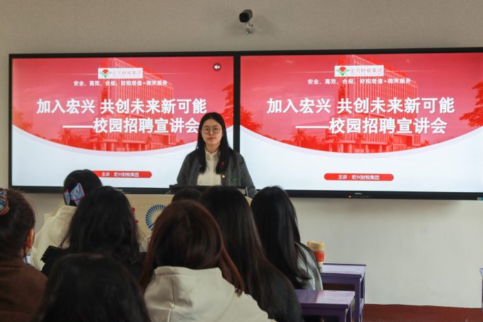 为拓宽毕业生就业渠道、提升就业质量,11月27日,澳门·永利集团3044于吉龙楼405教室举办宏兴集团校园招聘宣讲会,会计学、财务管理专业毕业生参会。