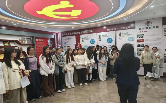 为助力学子精准对接行业需求,将财税理论知识转化为实操能力,2025年12月10日,2024级会计学1班赴宏兴财税服务集团有限公司开展参观实习活动,近距离感受现代化财税服务的运营模式与发展趋势。